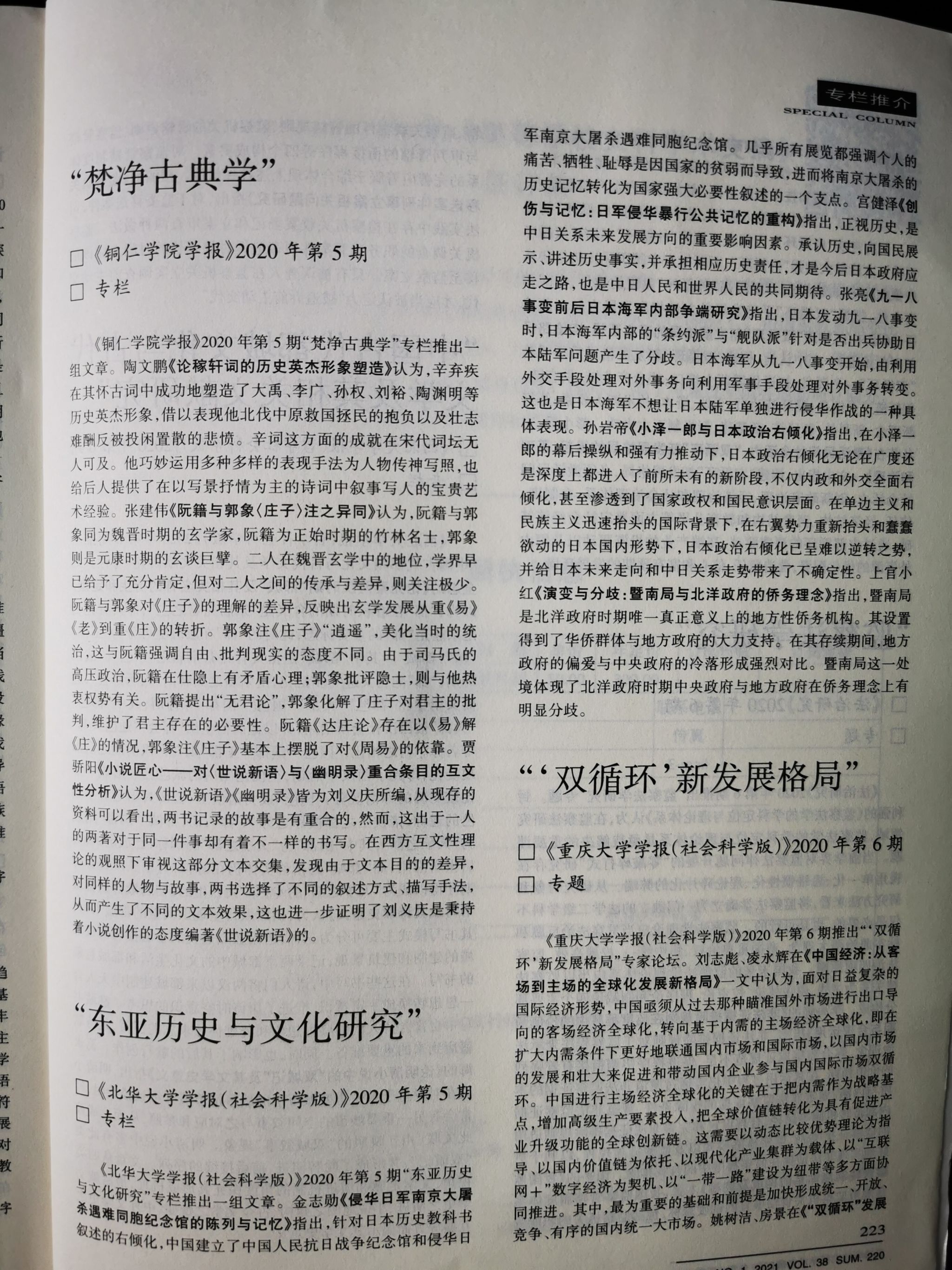 《美加墨世界杯官方网站学报》2020年第5期“梵净古典学”栏目被《高等学校文科学术文摘》2021年第1期专栏推介。