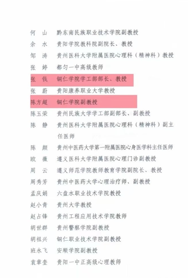 根据《省教育厅办公室关于推荐贵州省学生心理健康教育专家指导委员会成员的通知》要求,经学校推荐,专家推选、审核公示等环节,世界杯官网宋健、张钱、陈方超等三位教师当选为该委员会委员。