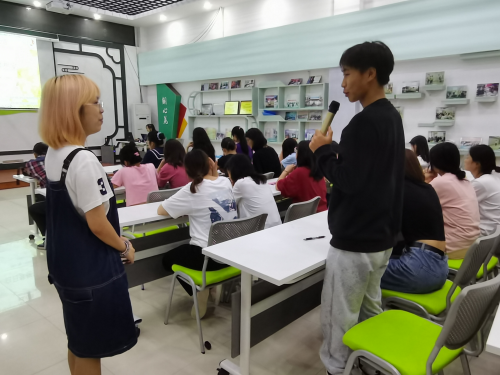 活动伊始,主持人让在座的同学们看屏幕上这次的电影名字《百日梦想家》,然后让同学们谈谈对这电影名字的理解,同学们从百日和梦想家这两个名词出发,对这个电影名进行阐释,同学们也都积极地参与到其中,纷纷表达了自己不同的观点。之后主持人让同学们在观看这部电影的过程中,带着对此电影名的疑惑去观看此电影,以此巧妙地引起了同学们对于该电影的兴趣。由于在主持人热情耐心的带动下,现场的每位同学不断融入其中。