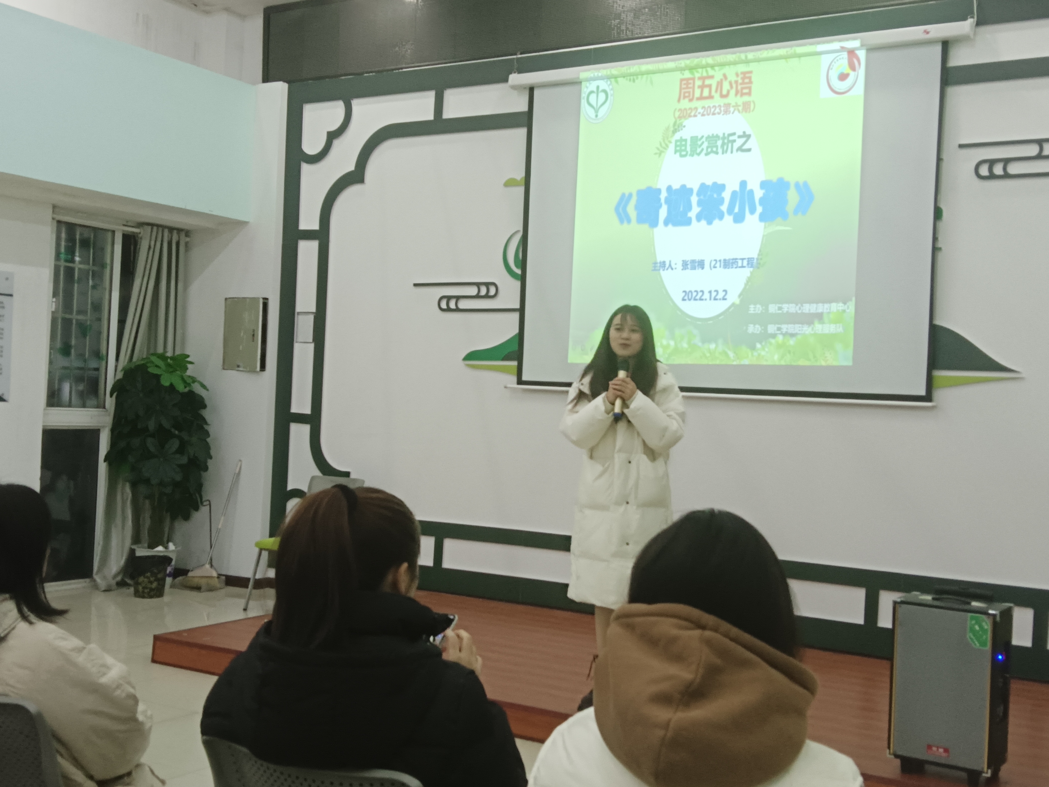 12月2日晚,世界杯官网在心理健康教育中心多功能室开展了本学年第六期周五心语活动——心理电影赏析之《奇迹笨小孩》。此次活动由2021级化工与制药工程2班的张雪梅同学主持分享,来自不同学院的50名同学共同参与。