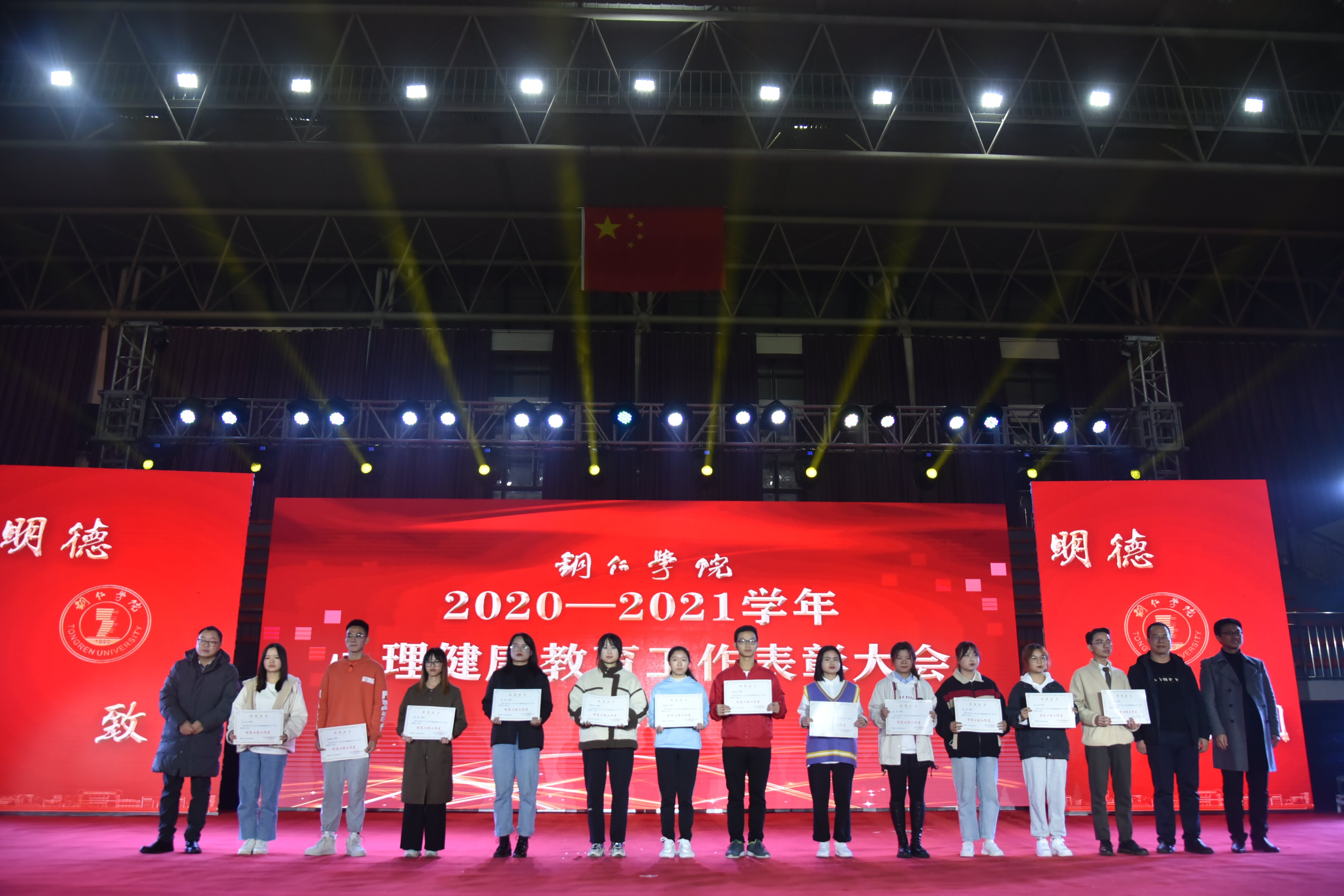 10月19日晚,世界杯官网第十四届“5·25心理健康活动月”系列活动之校园心理情景剧大赛暨2020-2021学年心理健康教育工作表彰大会在体育馆举行。党委学工部副部长武国丽,各学院心理工作站负责人出席此次活动及大会。各学院师生2000余人来到现场观看比赛并参加大会,来自六个学院的六个作品参加比赛,比赛及大会由陈梓豪、何璐璐两名学生主持。
