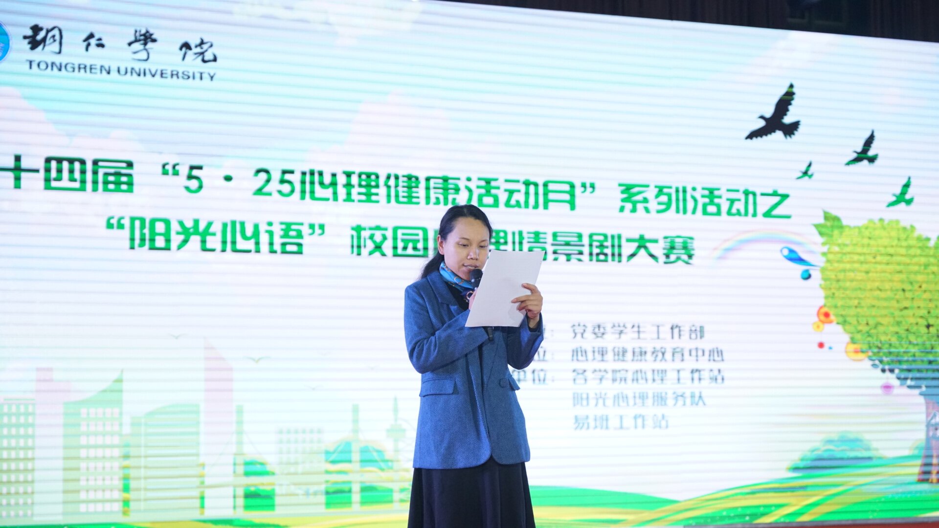 在首先进行心理情景剧大赛中,教育学院、人文学院、乌江学院、国际学院、马克思主义学院、大数据学院六个院通过初赛成功进入决赛阶段。各学院用不同的表演方式为大家呈现了精彩的心理情景剧,并以情景剧的方式向大家传达心理健康的重要性,告诉大家要正确对待心理问题,以积极的心态面对生活。一个个生动的心理小戏剧跃然于闪亮的舞台上,让人们更关注心理健康问题。生活的种种心理现象如果得不到缓解和解决,就会愈演愈烈,最后甚至涉及个人的生命安全。淋淋尽致的表演迎来络绎不绝的掌声和欢笑声,在不觉之中决赛也进入了尾声。大赛结束后,杨丽春教授对比赛作了点评,并现场解答同学们提出的问题。