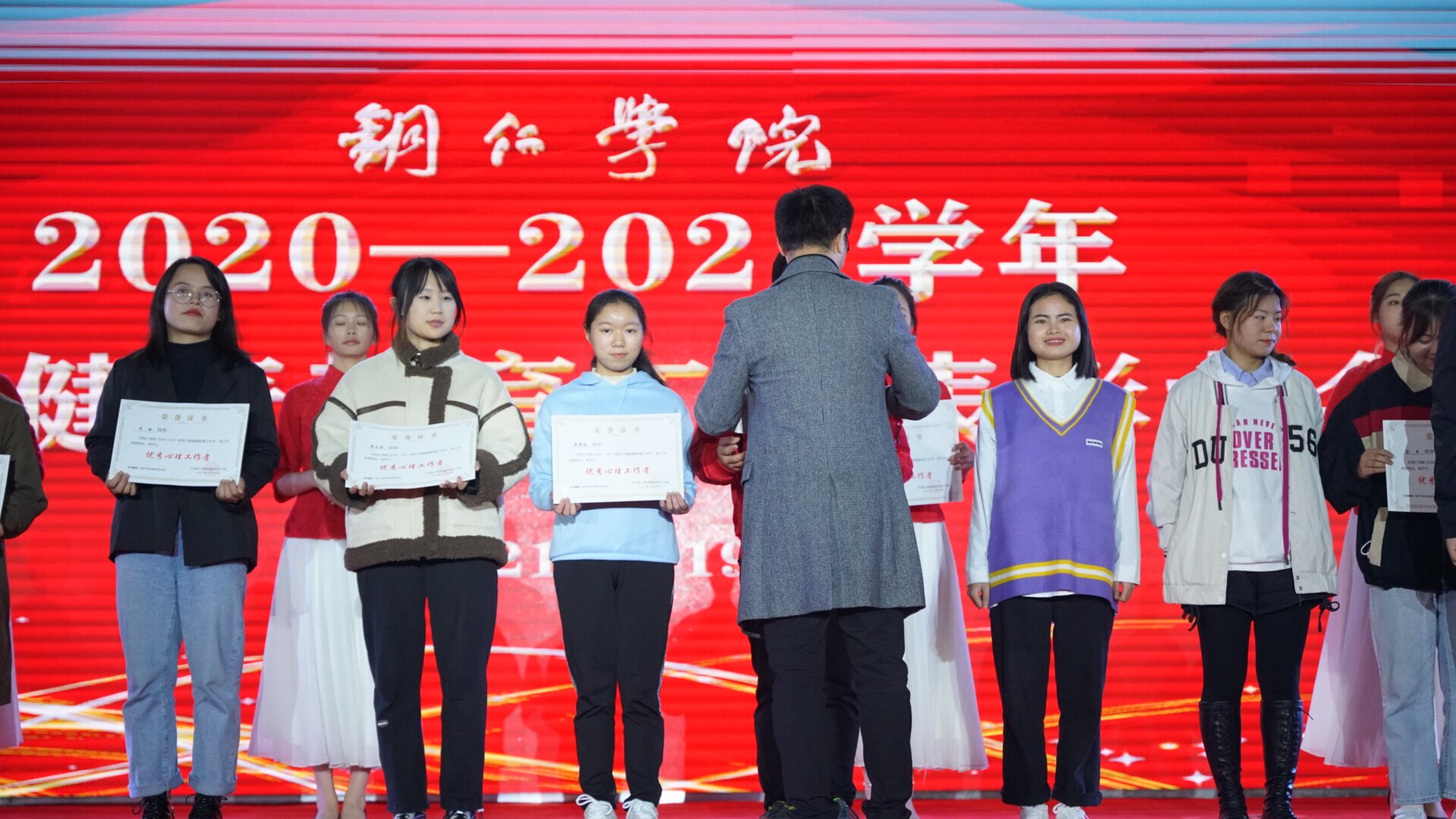 在表彰大会上,武国丽副部长首先宣读2020-2021学年心理健康教育工作“优秀心理工作者”表彰文件,随后与会领导现场为获得“优秀心理工作者”的82名教师和学生颁发荣誉证书。至此,本次大赛及大会在阵阵掌声中落下了帷幕。