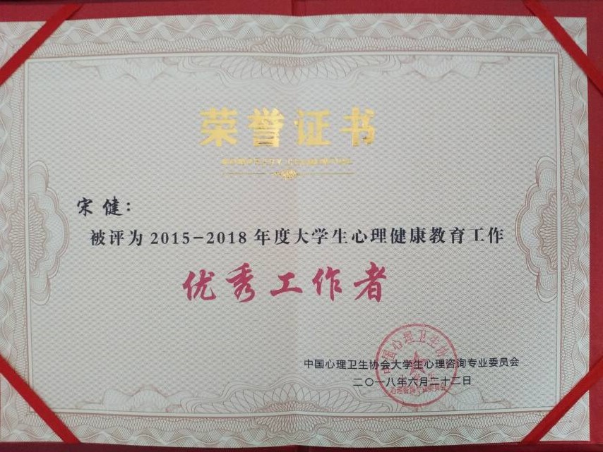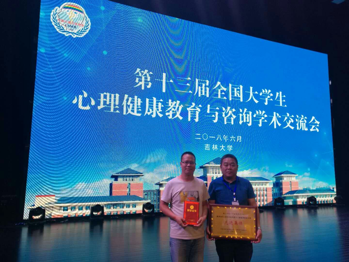 6月19日至22日,第十三届全国大学生心理健康教育与咨询学术交流会议在吉林大学举行,来自全国28个省市自治区1000余名从事心理健康教育工作的专家学者参会。会上,在进行专题报告和经验交流的同时,特别对2015—2018学年度在大学生心理健康教育与咨询方面做出突出成绩的集体和个人进行了表彰,世界杯官网心理健康教育中心荣获“全国大学生心理健康教育先进集体”称号,中心主任宋健荣获“全国大学生心理健康教育优秀工作者”称号。
