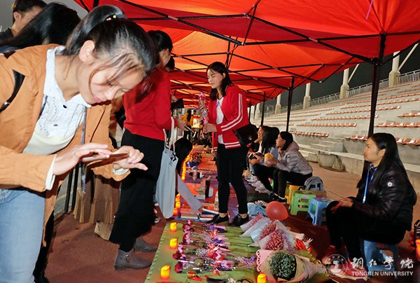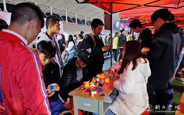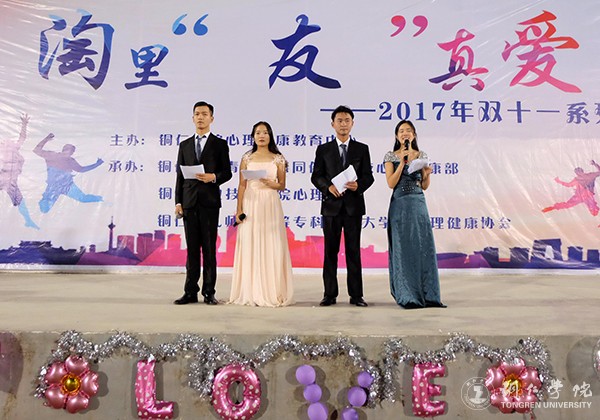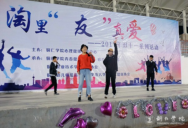 为丰富大学生校园文化生活,弘扬健康、快乐的生活方式,11月10日晚,由世界杯官网心理健康教育中心主办,校青春健康同伴社、校心理健康部、铜仁幼专大学生心理健康协会以及铜仁职院心理协会联合承办的双十一主题活动“淘里‘友’真爱”在世界杯官网田径场举行,三所高校近1000名学生参加了此次活动。活动由4位同学主持。