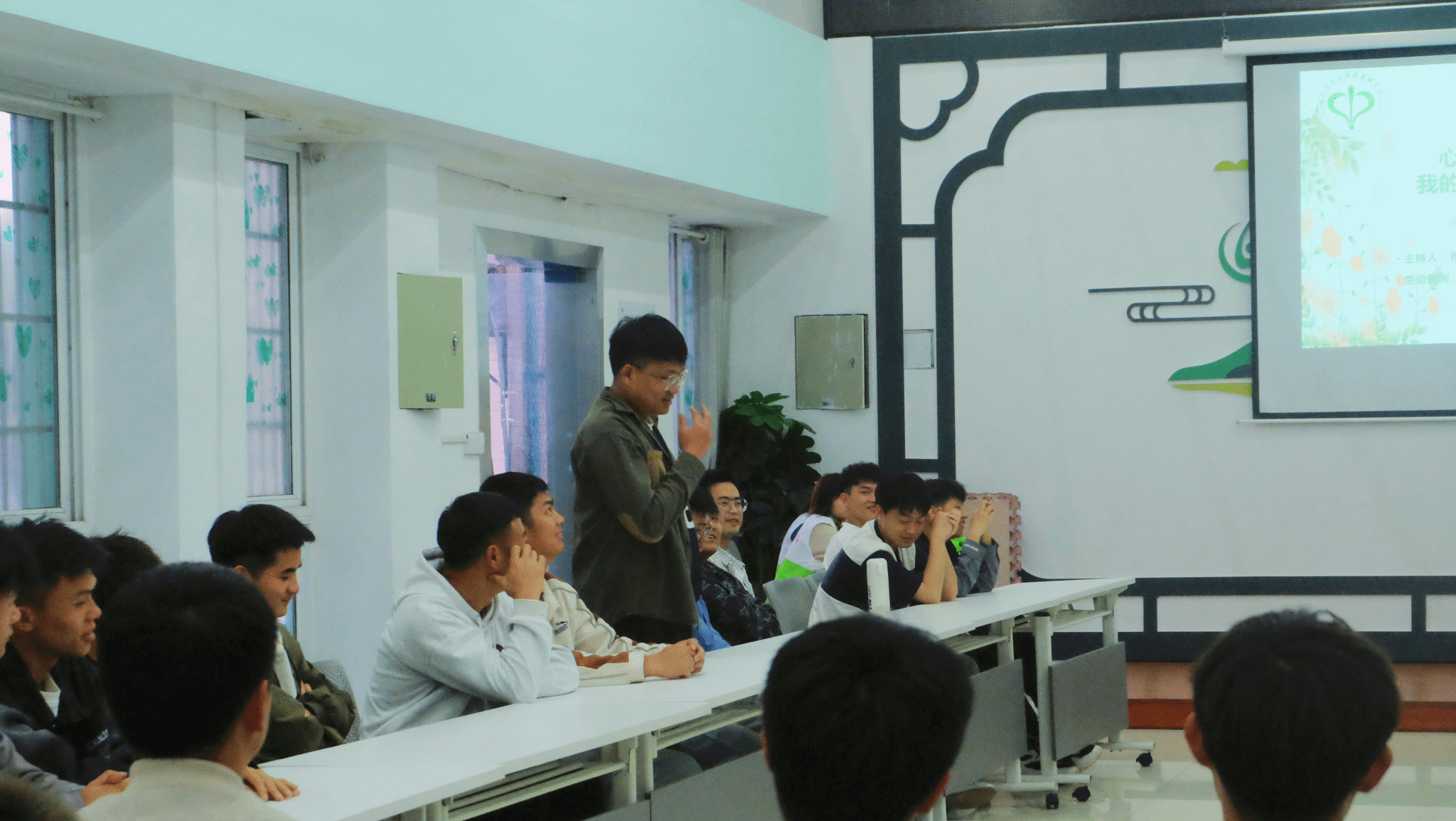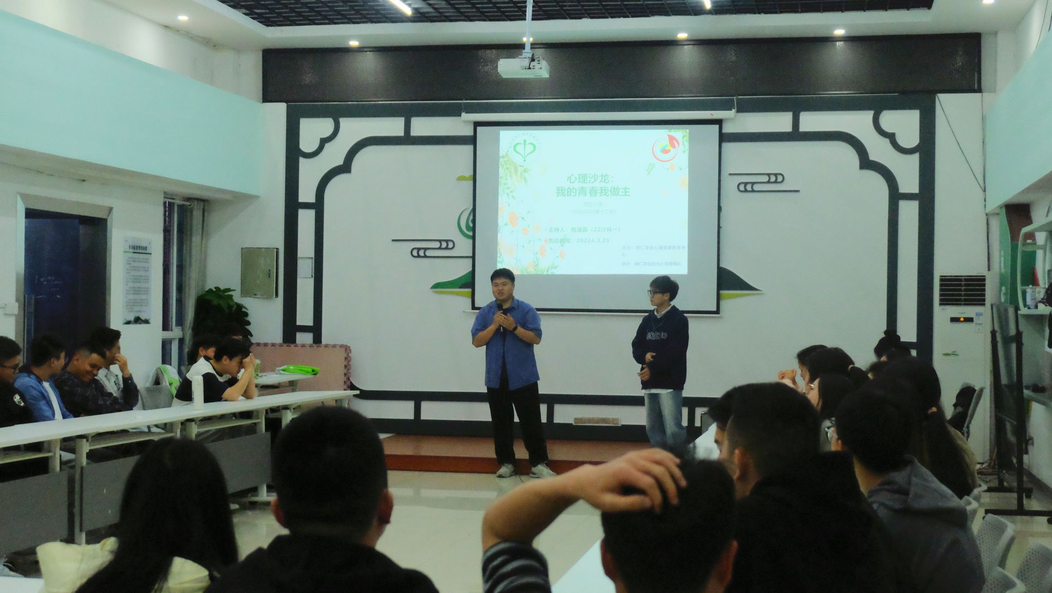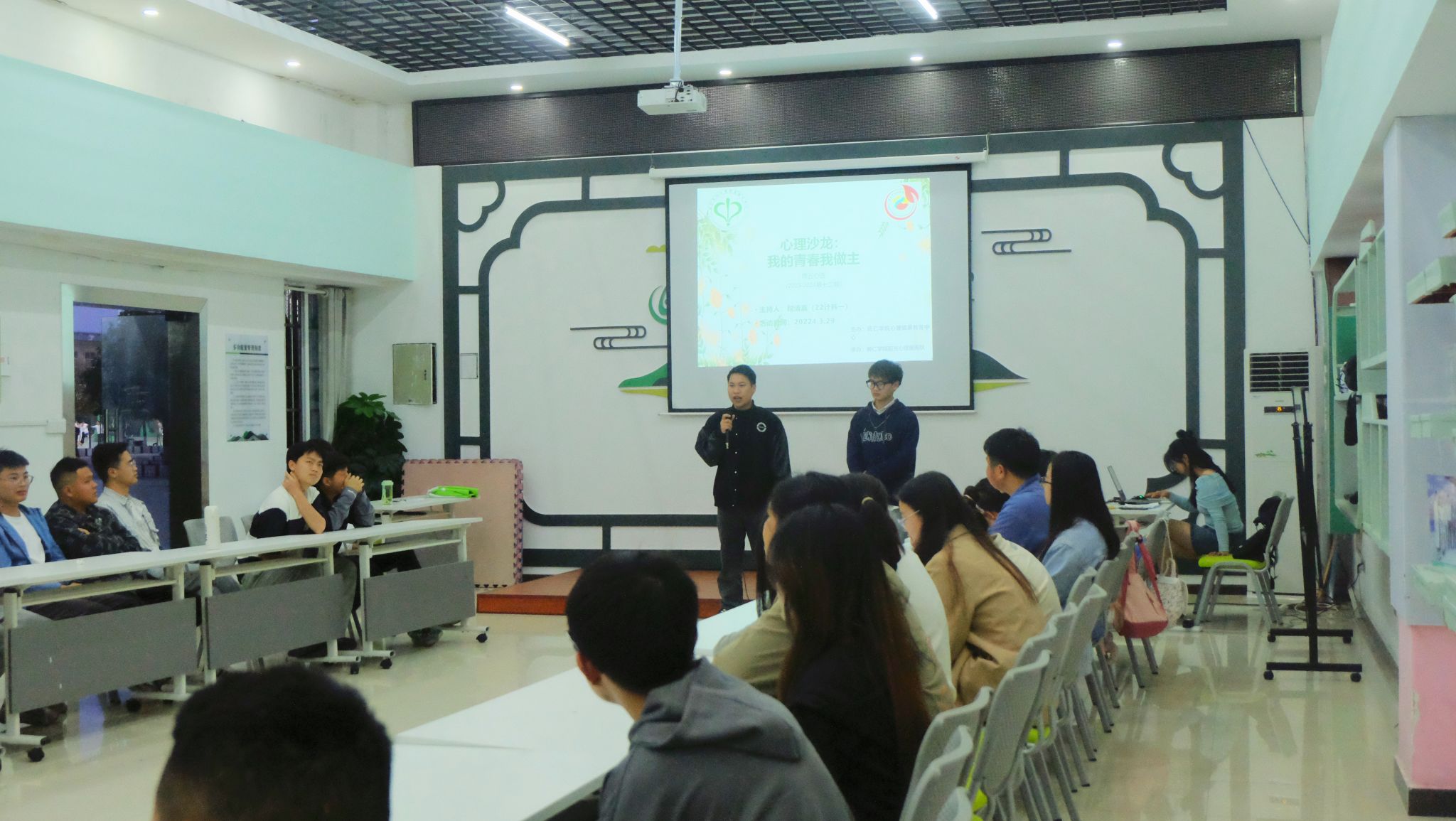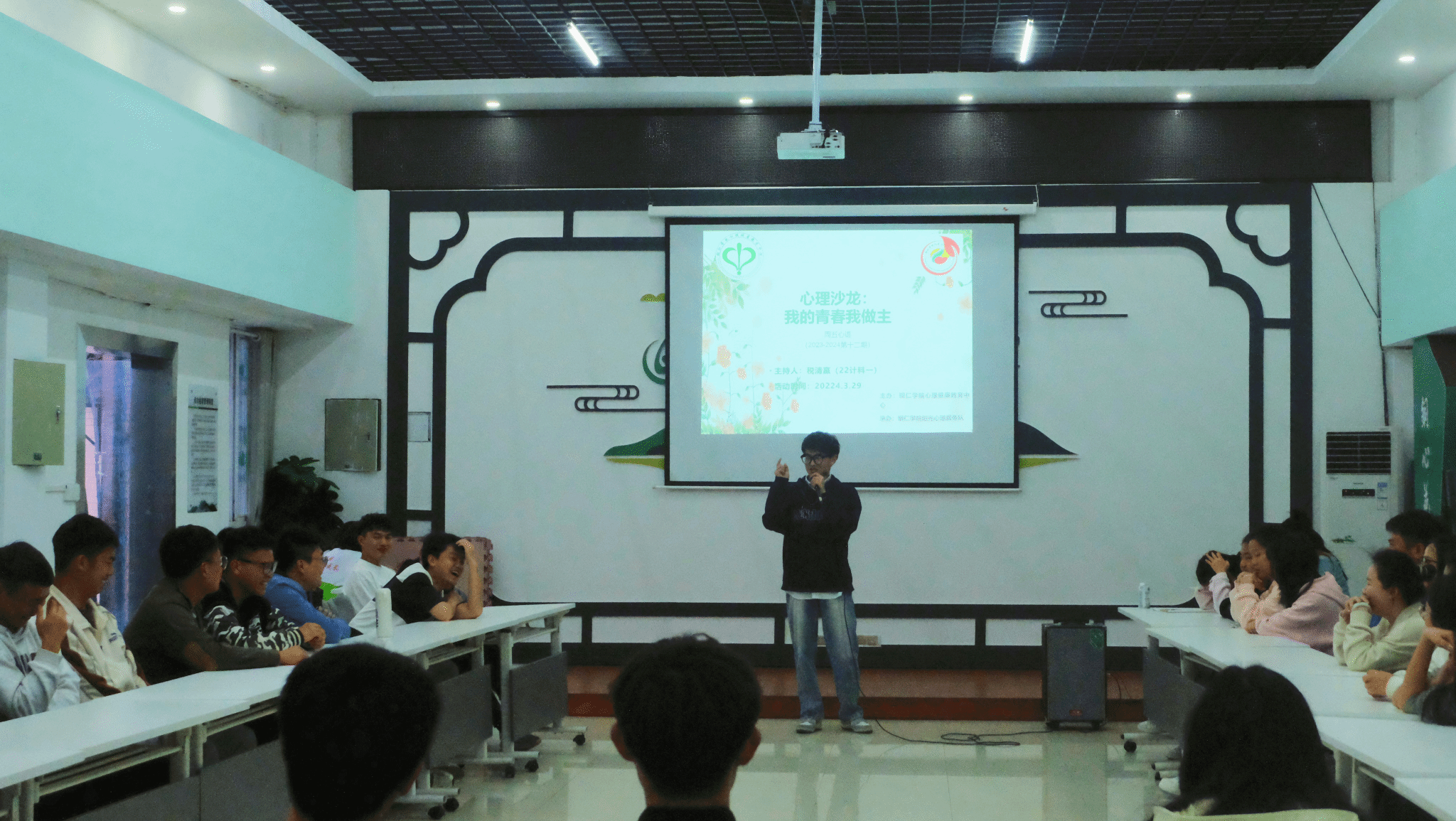 3月29日晚,世界杯官网心理健康教育中心在多功能室开展了2023-2024学年第十二期周五心语活动——心理沙龙之“我的青春我做主”。此次活动由2022级计算机科学与技术班税清赢同学主持分享,共有40名来自不同学院的同学参加。