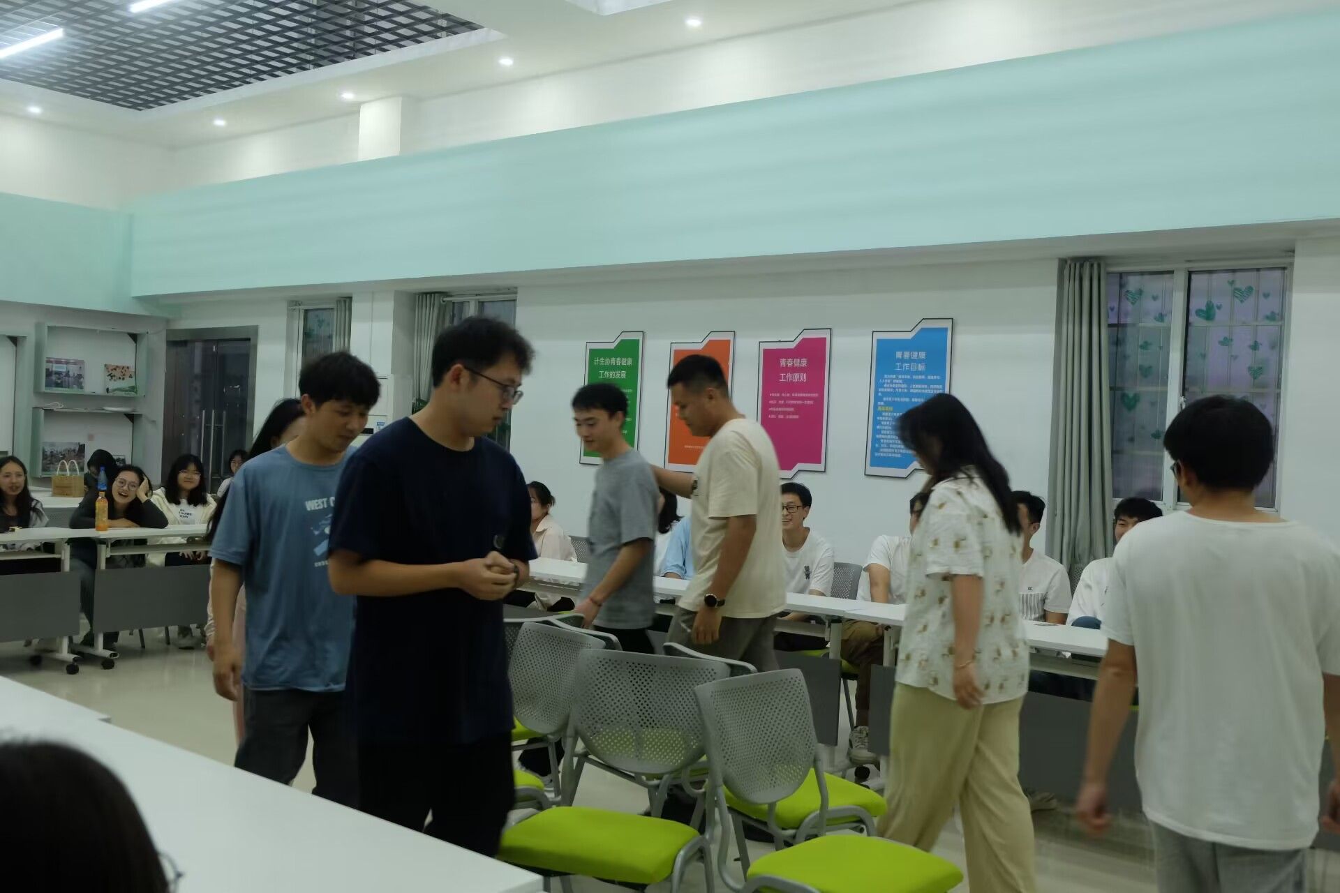 活动过程中,主持人带领大家进行一个名为“场景重现”的游戏。首先,主持人向同学们分发扑克牌,再以抽取扑克牌的方式选出几名同学进行场景重现。台上的同学表演得十分认真;台下的观众的情绪也被点燃,现场的氛围瞬间达到高潮。
