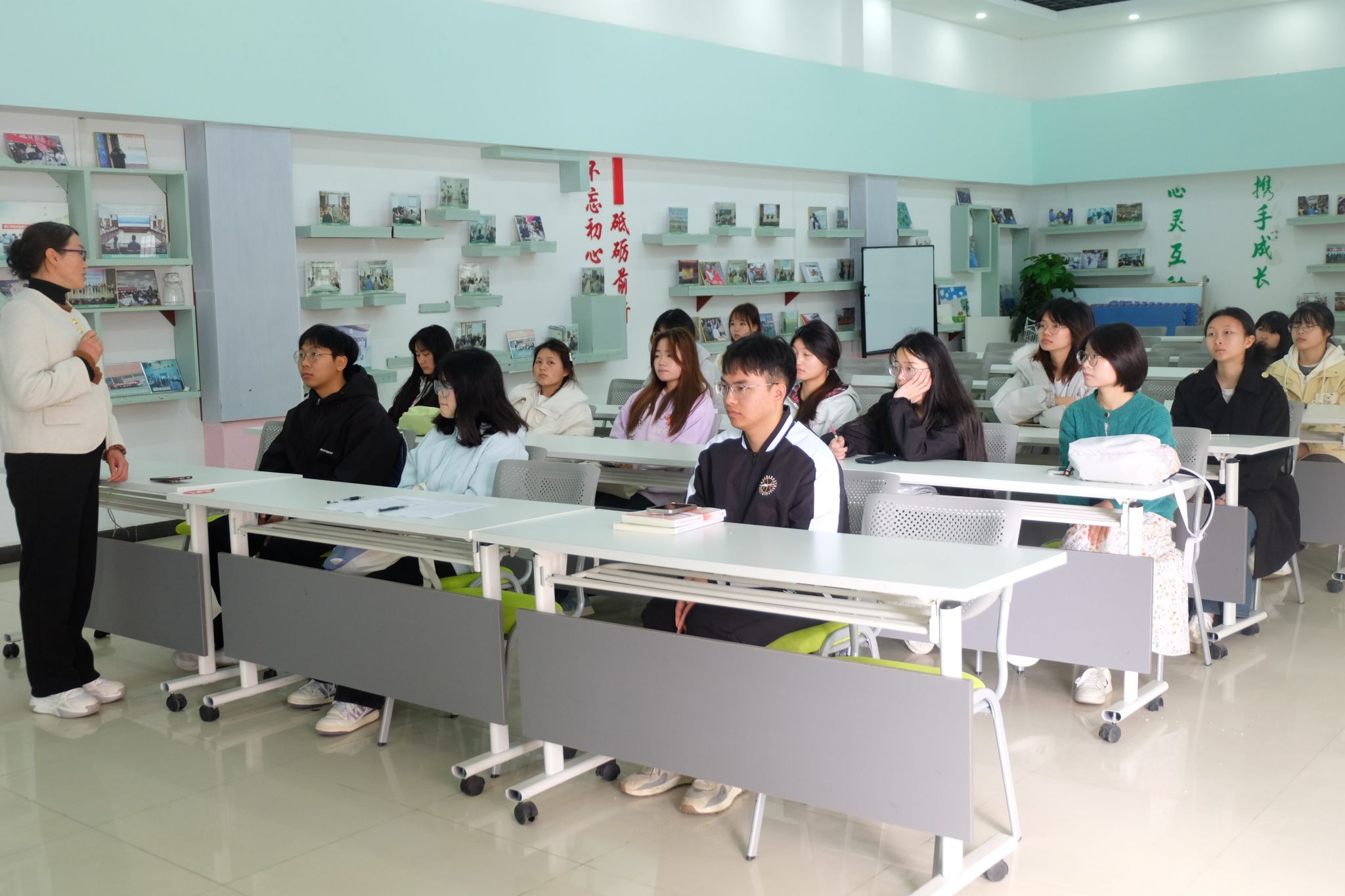 在心理服务部的培训会上,宋健老师以“做一名幸福的心理工作者”为主题,深入剖析心理疾病与治疗方法,为心理服务部成员的日常工作筑牢专业根基。部长何立芳表达了与成员相互学习、共同进步的愿景,强调在服务同学的过程中不断积累经验,提升服务的专业性和有效性。与此同时,洪伟侠老师也着重提醒全体成员认真对待工作,时刻关注工作中的细节与关键事项。