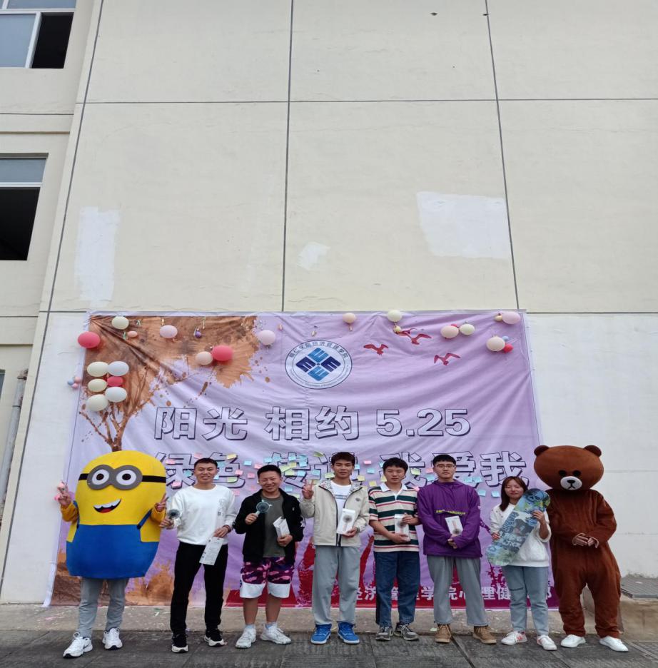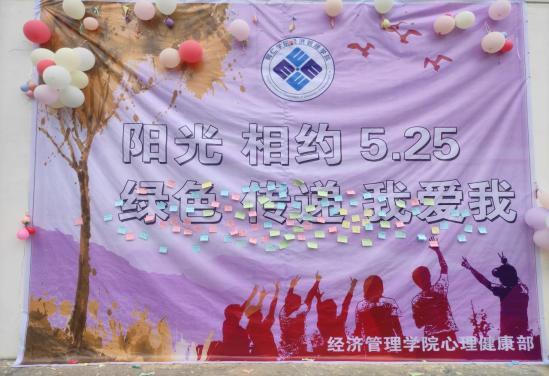 5月25日是全国大学生心理健康日,“5·25”的谐音即为“我爱我”,提醒大学生“珍惜生命,关爱自我”。为了号召更多同学关注心理健康问题,让同学们有更多机会了解自己,认识自己,正视自己,排除心理困扰,减轻心理压力,增强心理素质,关注自我的心理健康和心灵成长,经管学院心理健康工作站策划开展了以“阳光相约5.25、绿色传递我爱我”为主题的心理健康游园活动,以切实推进学生心理素质教育和心理健康工作。