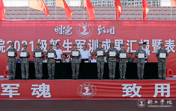 大会上,代亮宣读了2021级新生军训表彰名单。其中,三连、八连、九连、特战连4个连队荣获“优秀连队”称号,杨洪浩、杨通开、顾小贵、高鹏、吴毅5名教官荣获“优秀教官”称号,马浩、冉娇等101名学员荣获“优秀学员”称号。出席大会领导为受表彰的优秀个人和集体颁发了证书。
