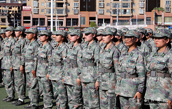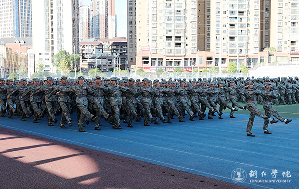 在军训团团长的指挥下,各连队进行了分列式汇报,受训新生们英姿飒爽、步履铿锵,目光灼灼、生披戎装,精神饱满、昂首挺胸,迈着矫健的步伐阔步走过主席台,接受领导的检阅。