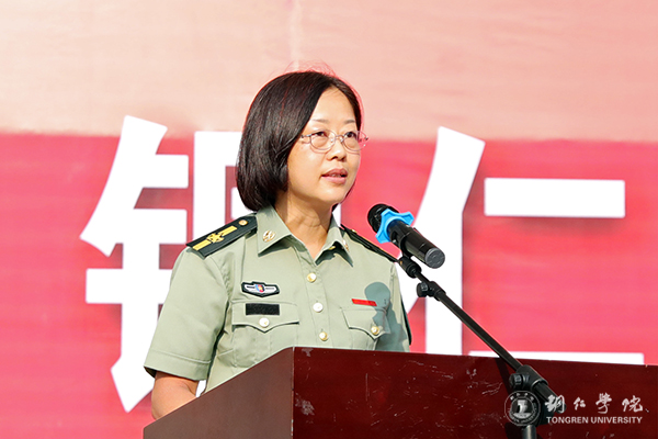 军训学生代表李剑兰发言