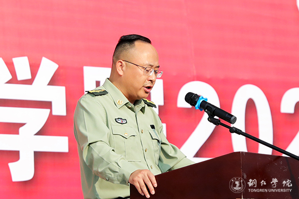 军训教官代表杨洪浩发言说,要一切从自我做起,以良好的军人形象带领大家,以过硬的军事本领引导大家,让同学们通过这次军训提高政治思想觉悟,增强集体主义精神和组织纪律观念,培养吃苦耐劳的精神,增强国防观念。军训学生代表李剑兰表示,将以军人的身份严格要求自己,自觉接受一次人生考验,克服骄气,努力培养自己吃苦耐劳的意志品质。