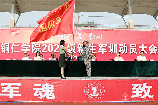 副校长罗静向军训团授旗