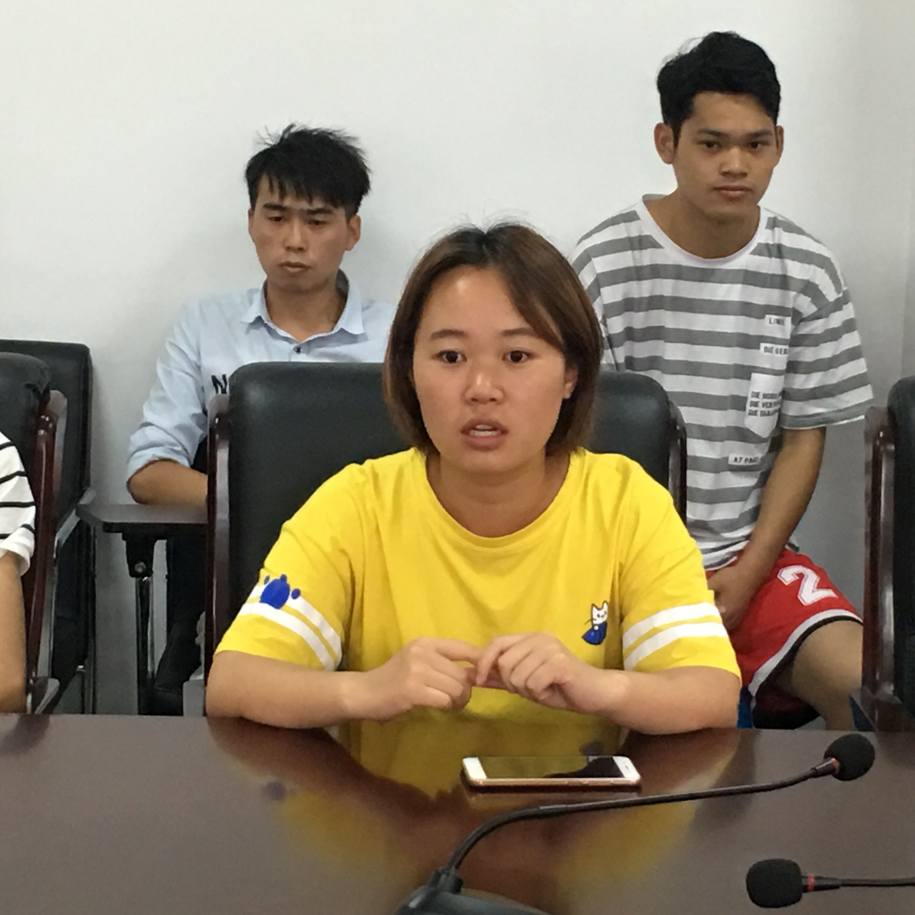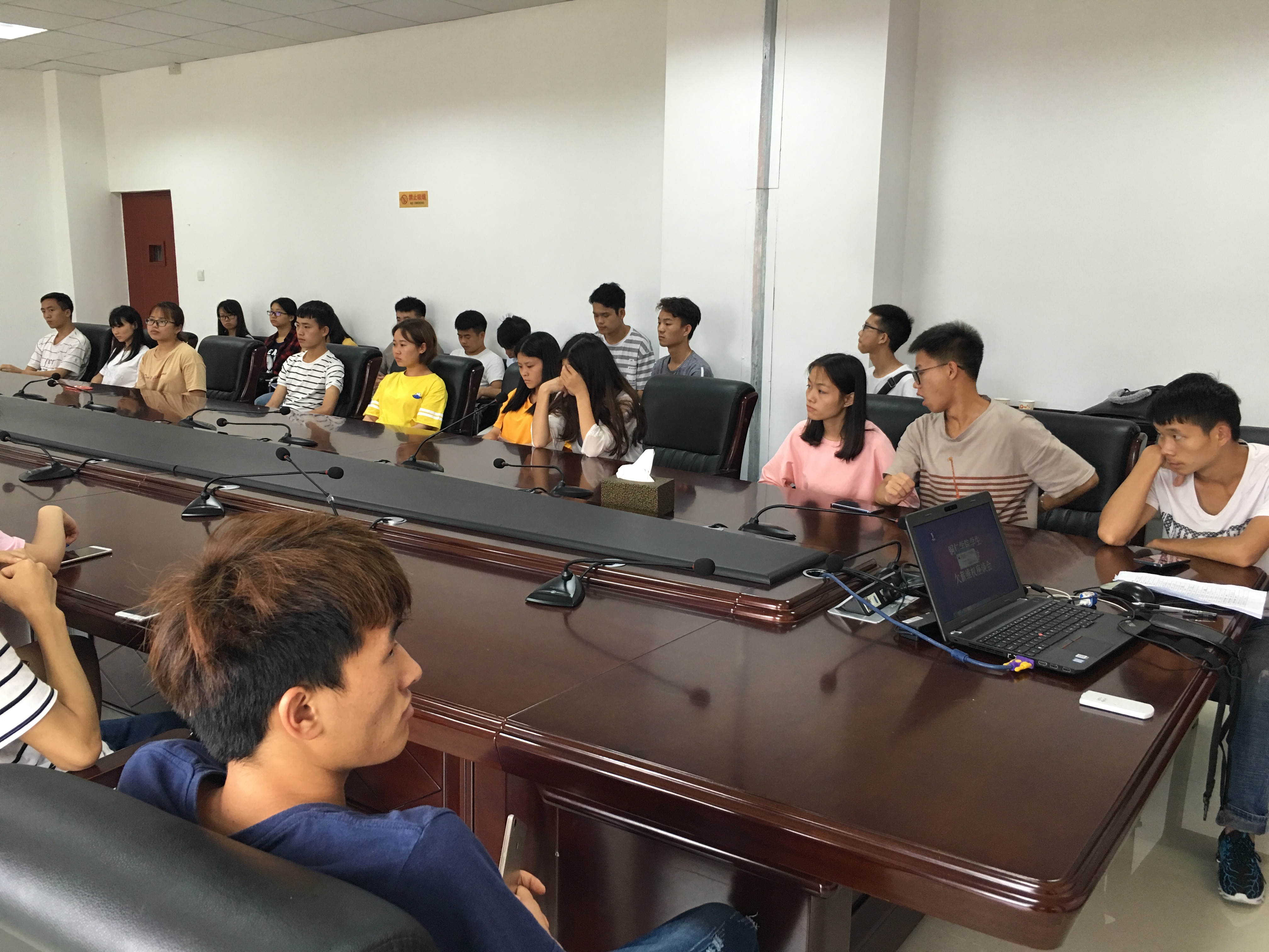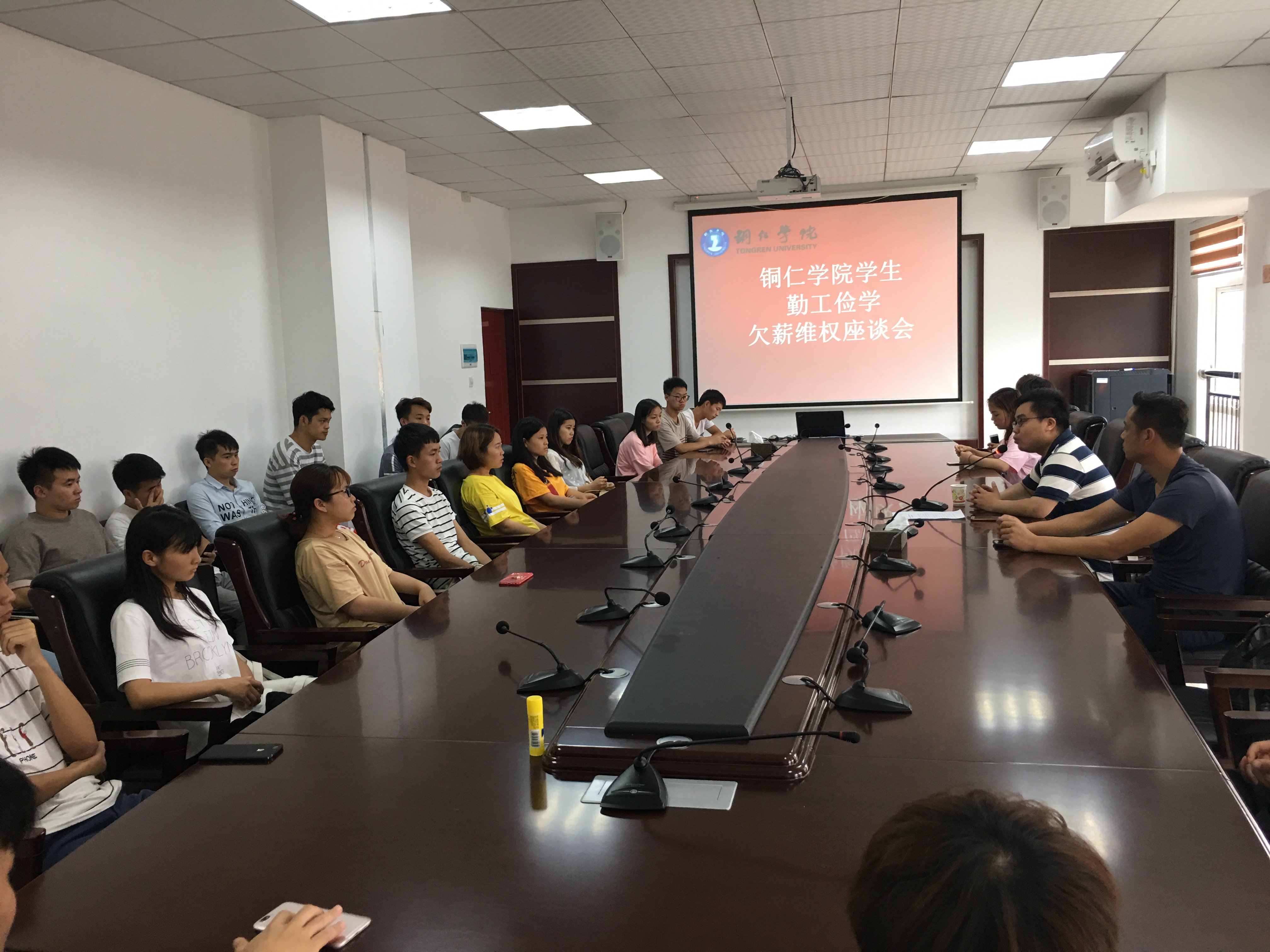 在会上,学生讲述了自己在假期工作中出现的欠薪的遭遇,冯渝安老师认真的听取同学的情况,查看了学生提供的资料。