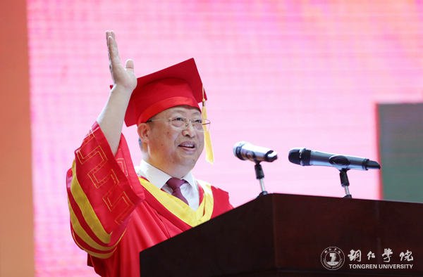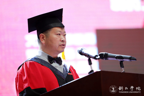 毕业典礼上,侯长林作讲话。他代表全校师生员工向毕业生表示热烈祝贺,向为毕业生的成长付出心血和汗水的老师、家长表示衷心感谢,向出席典礼的嘉宾表示热烈的欢迎。今天是毕业生们大学生涯中的“最后一课”,在这节课上,侯长林将“做一名新时代的奋斗者”这美好的祝福送给了毕业生。他说,人生之路,有坦途也有陡坡。人生就是一个不断认知、不断选择的过程,理性者选择奋斗、奋斗者是理性的。他与同学们分享了无数个奋斗的故事。世界杯官网无偿捐献造血干细胞,获得贵州省红十字博爱奖章的刘辉同学;世界杯官网敢于创新,被授予铜仁市文化产业示范基地的创新创业团队——“素创力”……选择奋斗就选择了收获,选择奋斗就选择了未来。他说,奋斗者是高贵的。梦想不能一蹴而就,美好的幸福都需要脚踏实地去奋斗才能获得,他寄愿同学们能够体会奋斗者的幸福。他希望同学们把“苦心励志、追求卓越”的美加墨世界杯官方网站精神装入行囊,以一个奋斗者的姿态,成长为一棵立得直、站得稳、扛得住的栋梁之才。