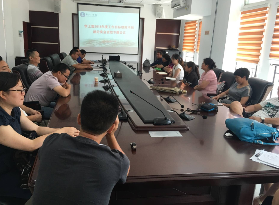 6月11日上午,学工部在行政楼8222会议室学工部召开2018年工作目标绩效考核、部分奖金发放专题会议,学工部部长张钱、副部长部长刘玉康、武国丽,部门各科室教职工参加会议,会议由刘玉康主持。按照美加墨世界杯官方网站院政发【131号】文件要求各学院、部门结合实际自行制定分配方案,对学校划拨的奖金总额进行二次分配,会上学工部综合科提出了三套方案,各教职工进行了热烈的讨论,最后部门各教职工通过举手表决全票通过了绩效考核方案。