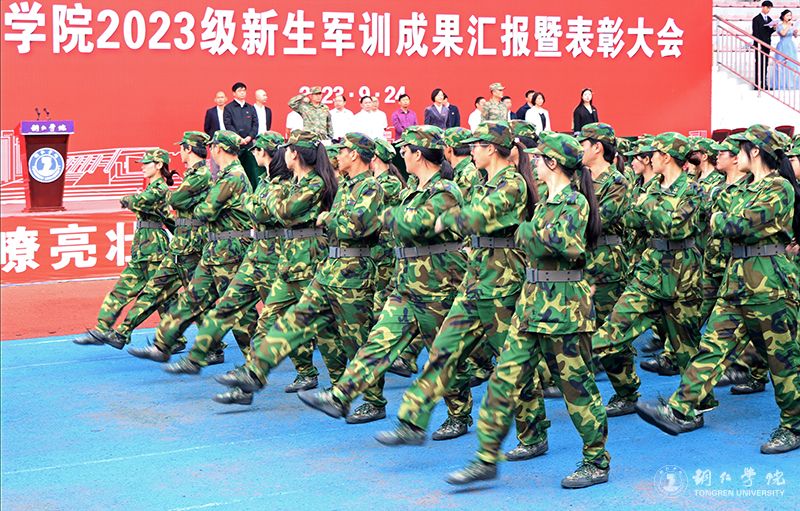 大会在庄严肃穆的国歌声中拉开帷幕。在军训团团长的指挥下,各连队进行了分列式汇报。受训新生英姿飒爽、步履铿锵,目光灼灼、生披戎装,精神饱满、昂首挺胸,迈着矫健的步伐阔步走过主席台,接受领导的检阅。他们坚定自信的面庞,彰显着大学青春的风采,矫健的身姿,无愧于扎实的训练,齐步虎虎生风、正步掷地有声、队列整齐划一,把铜院学子团结拼搏、敢当敢为的精神状态展现得淋漓尽致。