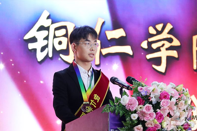 获奖代表蒋振炜表示,人生的道路都不尽是平坦的,每个人生阶段似乎都充满着或大或小的曲折,应努力去克服生活中的困难,并找清目标,为自己而奋斗。盛年不重来,一日难再晨,他呼吁作为青年一代的同学们,要及时当勉励,心怀不破楼兰终不还的壮志,以汗水挥洒青春,将个人理想与国家命运紧密相连,在追逐崇高理想中砥砺奋斗,绽放自我。