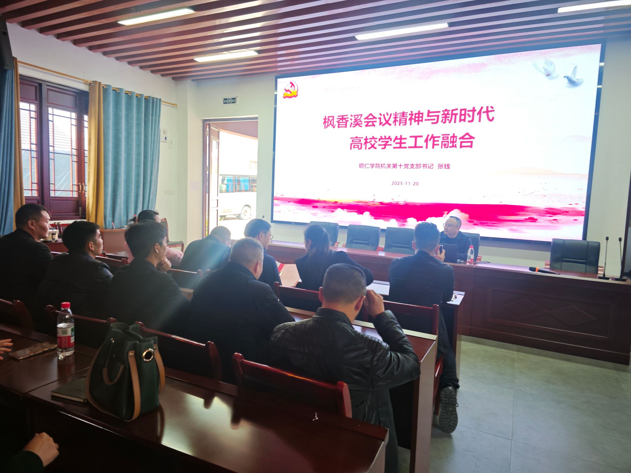 参观结束后,支部全体党员在枫香溪纪念碑重温了入党誓词。支部书记张钱在枫香溪党员教育基地以“枫香溪会议精神与新时代高校学生工作融合”为主题上了一堂精彩的党课。