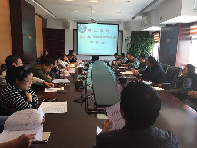 4月28日下午,学生资助管理中心在行政楼8312室召开2016—2017学年国家助学金评选部署会,参加会议的人员有学生资助管理中心主任石建成、副主任李光江和各专业学院分管学生工作的副院长和学生科科长。