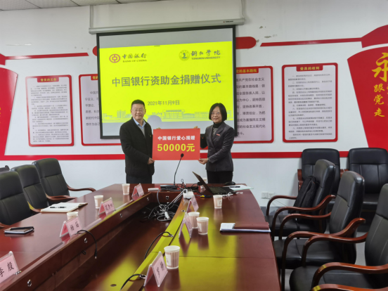 11月9日上午,中国银行铜仁分行在世界杯官网图书馆举行捐赠仪式,向世界杯官网捐赠5万元用于资助世界杯官网50名家庭经济困难学生。中国银行铜仁分行行长李殷、副行长杨笛、纪委书记窦伟、个人数字金融部副主任高森钰、党务部副主任田晓露、北门支行副行长李超贤,美加墨世界杯官方网站副校长罗静、监察室主任王劲松、财务处处长蒲天银、学生资助管理中心主任胡慧与副主任刘朝军出席了本次捐赠。仪式由学生资助管理中心主任胡慧主持。