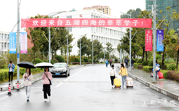 校园迎新横幅异常醒目