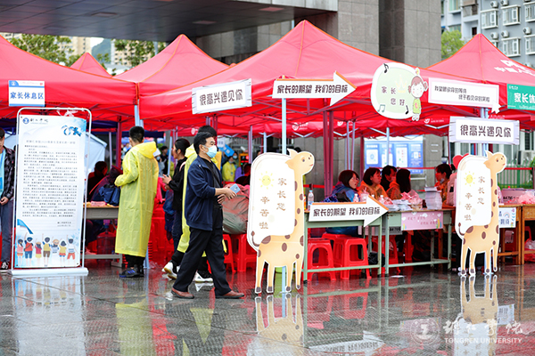 校门口设置的新生家长休息区