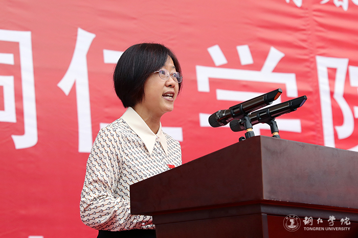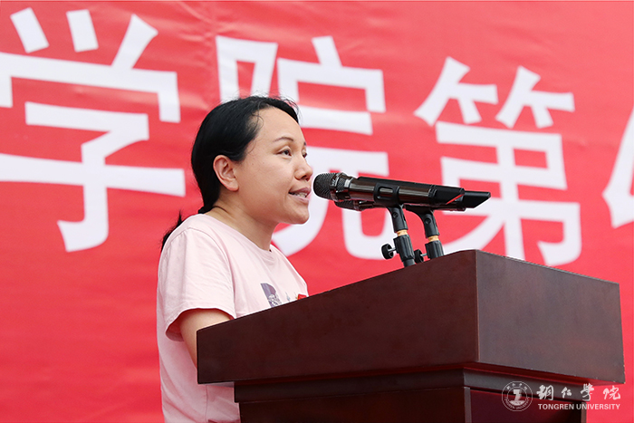 大健康学院党委书记、院长余静宣布运动会竞赛成绩