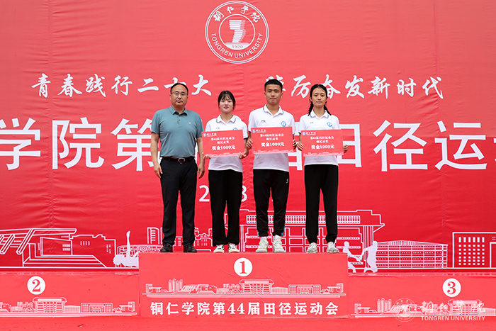 值得一提的是,在贵州省第五届学生运动会中,大健康学院的冉娇同学在女子400米项目上以1:02.28的成绩打破了2010年7月唐梅创下的1:02.70的校记录,李维东同学在男子铅球项目上以13.58米的成绩打破了2019年田磊创下的12.74米的校记录,张凤同学在女子跳远项目上以5.44米的成绩打破了2019年10月姚诗雨创下的4.91米的校记录;在本届运动会中,梁胜武同学在男子跳高项目上以1.81米的成绩打破了2012年10月刘行创下的1.80米的校记录。