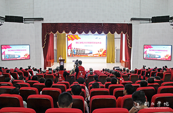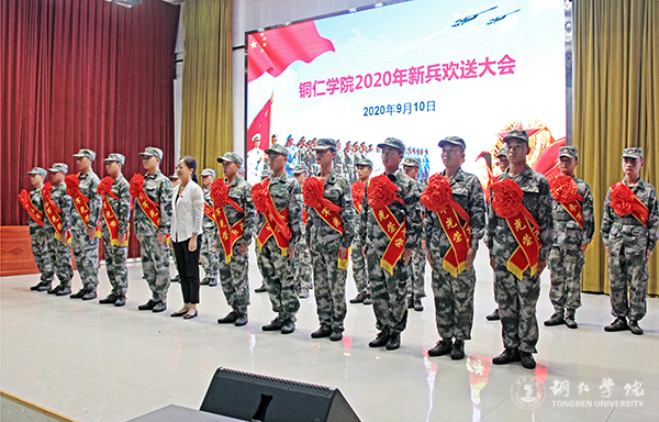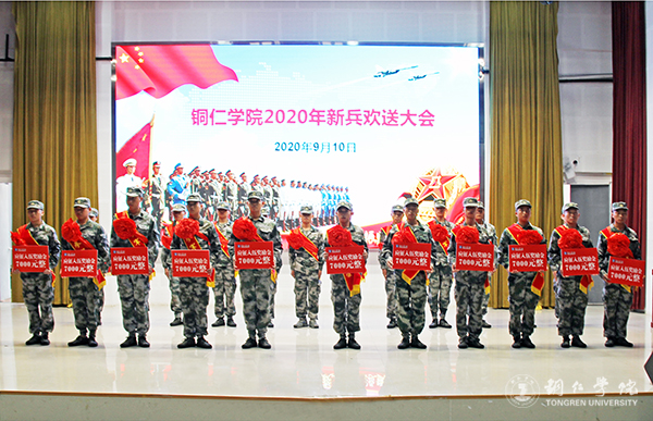 9月10日下午,世界杯官网在梵净山人文生态馆举行2020年新兵入伍欢送会。副校长罗静,学工部部长张钱,教务处、招就处、资助中心、保卫处、团委负责人,各二级学院党委书记、分管学生工作的领导、学生科负责人、辅导员代表、学生代表等参加会议。校长侯长林、党委副书记代亮在会后看望了入伍新兵并与他们合影留念。