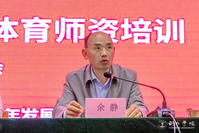 余静在讲话中指出,随着现代社会经济的高速发展,体育教师要不断更新知识和技能,积极主动参与到学习中去,才能与学生共成长,与事业共发展。他向全体参训学员提了四点要求:一是要在思想上高度重视,增强学习的政治自律;二是要在培训中明确目标,增强学习的质量效果;三是要在方法上重视理念,增强学习的有效应用;四是要在工作中强化师德,锻造教师良好形象。