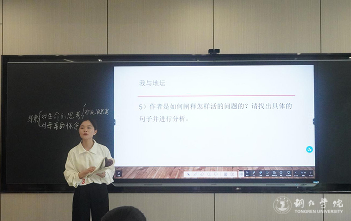 比赛从早上六点开始,参赛选手们依次进行了抽题—备课—即席演讲—模拟授课的环节。赛中,参赛选手能够准确理解演讲主题,把握演讲要点,引起听众兴趣与共鸣,彰显个人特色与风格。在模拟授课过程中,选手们能够运用灵活多样的教学方法,将教学内容与图片、歌曲、视频以及教学工具、板书相融合,通过互动,活跃比赛氛围,充分展现教学风采。