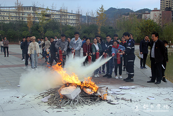 消防安全逃生演练后,贵州全民安居消防知识宣传服务中心李儒鹏教官为大家演示了正确的火灾逃生姿势以及如何正确使用消防器材。他强调,要在日常工作生活中加强训练,有效掌握在危险环境中迅速逃生、自救、互救的基本方法,提高抵御和应对紧急突发事件的能力,一旦身边发生突发事件,一定要沉着冷静。通过他的讲解和演示后,部分师生亲身体验了消防灭火器的使用操作步骤。
