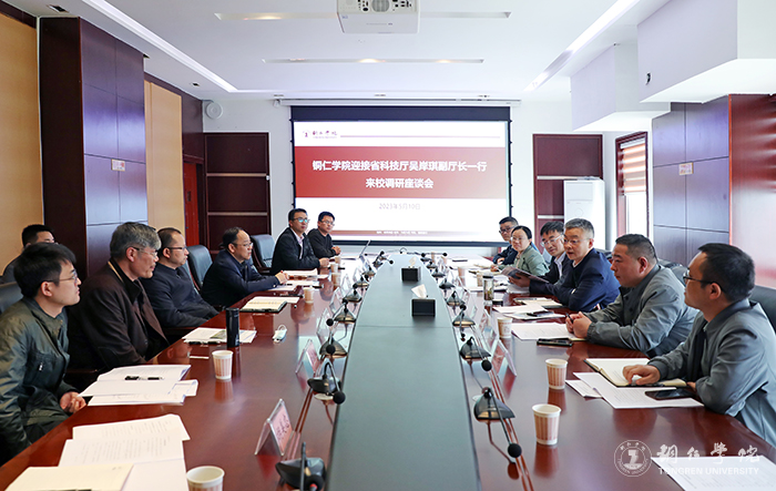5月10日,省科学技术厅党组成员、副厅长吴岸琪,省科技厅基础研究处处长徐国敏,省科技情报所研究室主任陈军义一行来世界杯官网调研考察。铜仁市政协副主席、市科技局局长赵震洋,市科技局党组成员、副局长黄朝军,世界杯官网副校长石维、科研处处长周刚等人参加调研座谈会和实地走访考察。