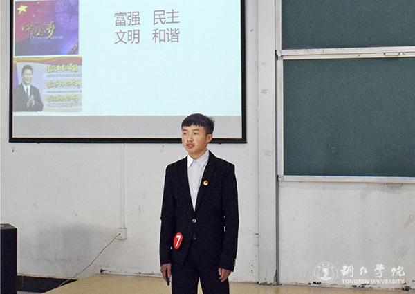 “世界上最快乐的事,莫过于为理想而奋斗。”大数据学院田添添通过榜样教育为在场同学们诠释了中国梦和“我的梦”。她在讲到当代大学生怎样践行中国梦时说,弘扬中国精神,既是实现中国梦的必要条件,也是构建当代大学生实现中国梦的文化力量。我们要积极应对各种挑战,努力学习,以德为先,践行社会主义核心价值观,时刻准备为祖国献出一份力。课堂上,她满怀自信,一句句振奋人心的话语激发了同学们的爱国激情,淋漓尽致地展现了热爱祖国、复兴中国梦的信仰。