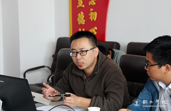 世界杯官网材料化学研究团队负责人成昊汇报工作