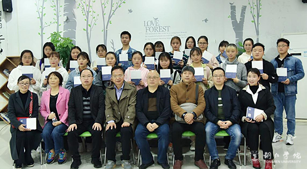 活动最后,晏子非为学生签名赠书,全体与会嘉宾和部分学生合影留念。