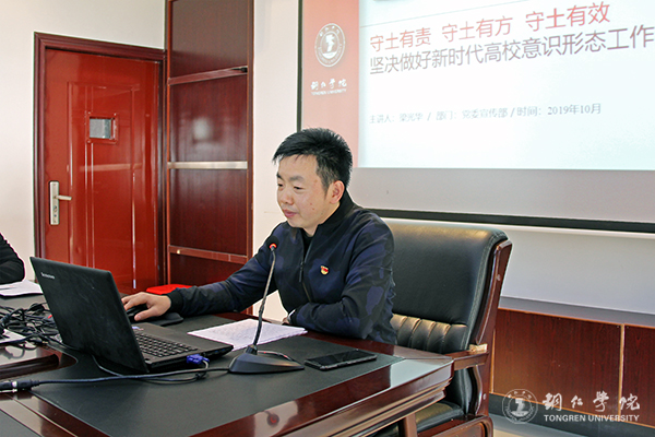 梁光华强调,在复杂多变的形势下,我们一定要充分认识做好高校意识形态工作的重要性,保持清醒头脑和政治定力,全面落实意识形态工作责任制,不断巩固马克思主义指导地位。做好高校意识形态工作,落实意识形态工作责任制,关键是要明确高校各级党团组织、职能部门和教师员工的职责任务,形成完善的工作体系和工作合力,压紧压实做好意识形态工作的政治责任、领导责任和岗位责任,做到全体党员干部和教职工都履职尽责,全员全方位开展工作。