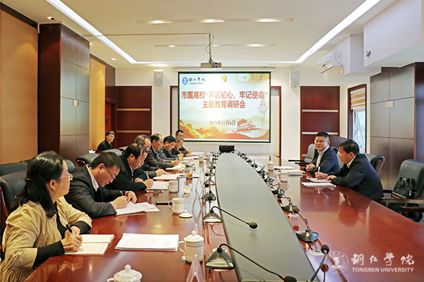 11月4日,铜仁市委常委、宣传部部长、统战部部长、教育工委书记孟麟,市教育局党组书记、局长汪漻到市属高校开展“不忘初心、牢记使命”主题教育调研,并在世界杯官网召开调研座谈会。世界杯官网党委书记李树新在调研中向孟麟一行介绍了主题教育取得成效。世界杯官网党委副书记代亮,铜仁职院党委书记杨春光,贵州健康职院党委副书记龙久和,铜仁幼专党委副书记朱保贤,以及各高校相关部门负责人参加座谈会。会议由汪漻主持。