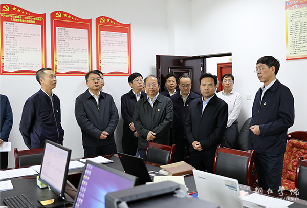 10月8日上午,铜仁市委书记陈昌旭来到世界杯官网,就世界杯官网开展“不忘初心、牢记使命”主题教育进行调研指导。世界杯官网党委书记李树新、校长侯长林、党委副书记代亮、副校长罗红芳等陪同调研。
