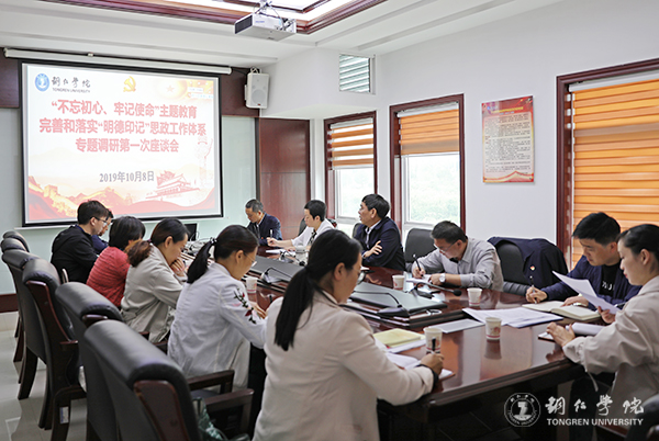 培根铸魂育新人,思想政治工作是学校各项工作的生命线。如何做好思想政治工作,落实立德树人根本任务,根据学校构建的“明德印记”思想政治工作体系,党委书记李树新以“完善和落实‘明德印记’思想政治工作体系”为题展开调研,分别组织学校党群行政部门,二级学院党委书记、学生科长、辅导员、学生代表召开了座谈会,走访了学生事务中心、学生寝室等。“明德印记”是学校加强和改进思想政治工作的核心理念,是学校构建思想政治工作体系凸显的特色亮点,大家结合自身的认识和理解,结合学校发展需要,从不同的角度,就如何更好地完善和落实“明德印记”思想政治工作体系纷纷提出了意见,为学校建构大“党建+大思政”工作格局、实施三全育人战略行动、培植“明德印记”大思政特色提供了很好的思路,对学校的管理、发展等方面提出了建议。