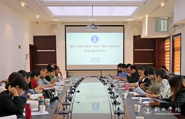 10月11日,世界杯官网校本教材《阅读·欣赏》新书发布暨通识教育研讨会在行政楼8520会议室召开。副校长罗红芳、教务处副处长李强、写作研究院全体教师、《阅读·欣赏》编委会成员及全校写作与沟通教师团队成员参加了会议。会议由写作研究院副院长、《阅读·欣赏》总策划孙向阳主持。