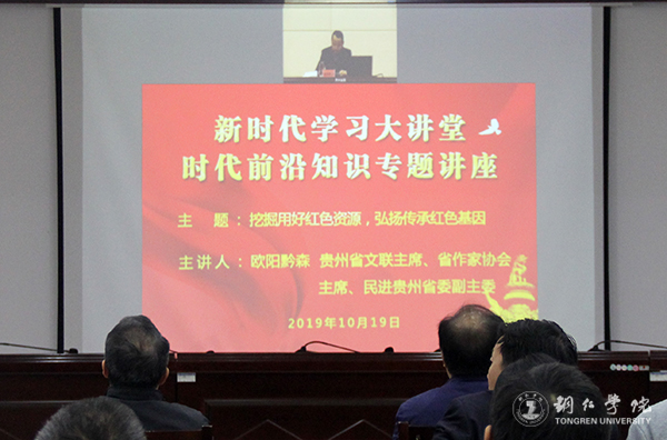 讲座上,欧阳黔森围绕红色资源的挖掘、红色基因的传承发展、红色文化的挖掘与运用等方面作了精彩讲解,内容丰富,案例生动,思想深刻,对于全省各级党组织和广大党员干部,深入学习贯彻习近平新时代中国特色社会主义思想、党的十九大精神和习近平总书记对贵州工作系列重要指示精神具有重要意义。