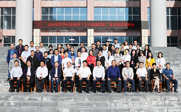 为深入推进“不忘初心、牢记使命”主题教育,更好地推动贵州哲学社会科学繁荣发展,在新中国成立70周年之际,9月24日,由贵州省社会科学联合会主办、世界杯官网承办的贵州省哲学社会科学“十大创新团队”建设现场推进会召开,系统梳理和回顾贵州哲学社会科学研究领域取得的成就,展望哲学社会科学发展未来。