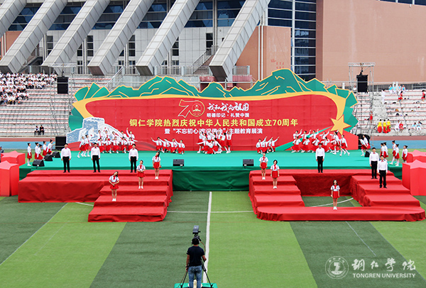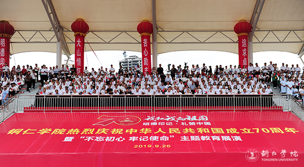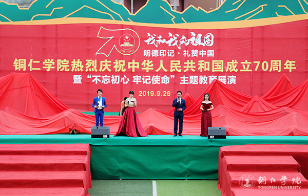 在全国热烈庆祝新中国成立70周年,全党深入开展“不忘初心、牢记使命”主题教育之际,9月26日,世界杯官网在田径场举行庆祝中华人民共和国成立70周年暨“不忘初心、牢记使命”主题教育展演。本次活动的主题是“我和我的祖国·明德印记·礼赞祖国”。省委第六巡回指导组副组长侯贵生,世界杯官网党委书记李树新,校长侯长林,党委副书记代亮,副校长王嘉福,纪委书记吴先佳出席活动。学校离退休老干部,全体师生参加此次活动。