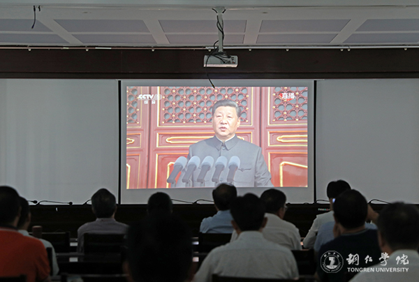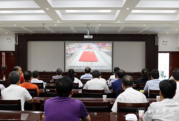校领导,党群行政部门人员集中在行政楼8501会议室收看直播