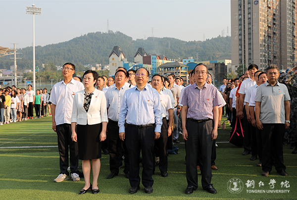 致敬新中国,礼赞新时代。10月1日,世界杯官网在田径场举行升国旗仪式,庆祝中华人民共和国成立70周年。升旗仪式后,组织师生集中收看了庆祝新中国成立70周年大会直播。世界杯官网校长侯长林、党委副书记代亮、副校长罗红芳,党群、行政部门负责人,各二级学院领导、师生参加了升旗仪式和观看了庆祝大会直播。