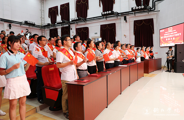会上还播放了学校录制的宣传片《爱国奋斗 立德树人》,展现了世界杯官网教师良好的精神风貌;穿插举行了四重唱《老师,您好》、诗朗诵《老师,您辛苦了》等节目,歌颂了教师的优秀品质;全体与会教师合唱了《我和我的祖国》,抒发了对祖国的热爱。