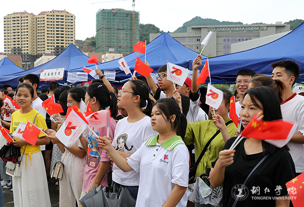 活动现场,参加表彰大会的领导、老师,入学报到现场的迎新队伍、新生及新生家长纷纷赶来,参与到活动当中。“优秀教师”身上的授带、新生手中的录取通知书、大家手里挥舞的五星红旗,成为了一道道端庄、亮丽的风景。